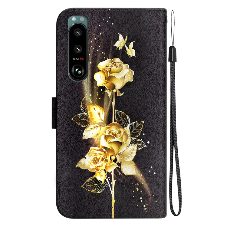 Estuche para Sony Xperia 5 III de Cuero con Dibujo Coloreado y Textura de Cristal (Mariposa Dorada Rosa)