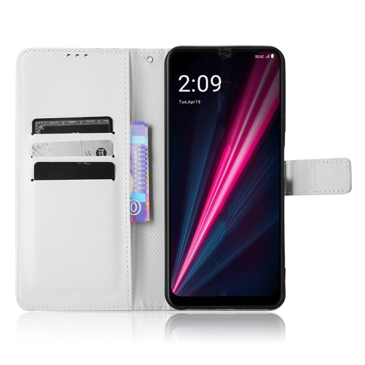 Funda para T-Mobile Revvl 6 Pro 5G con Textura Diamante en Cuero (Blanco)