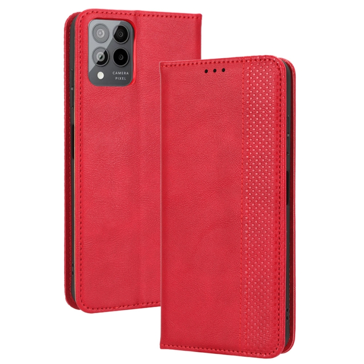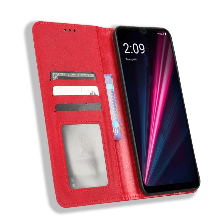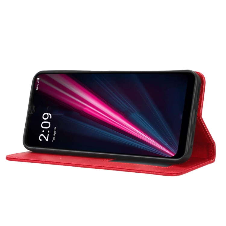 Funda de Cuero para T-Mobile Revvl 6 Pro 5G con Hebilla Magnética y Textura Retro (Rojo)