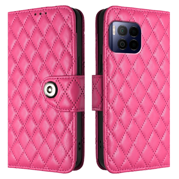 Funda para T-Mobile Revvl 7 Pro 5G con Tapa de Cuero Textura Romboidal y Cordón (Rojo Rosa)