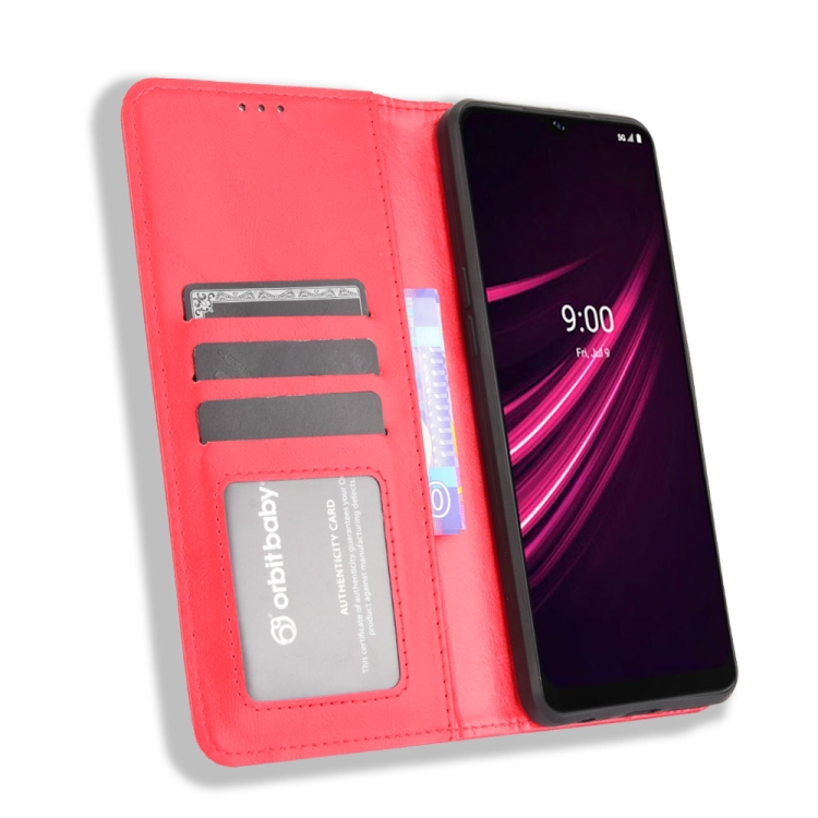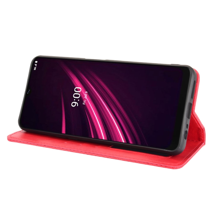 Funda de Cuero T-Mobile Revvl V + 5G Flip Horizontal Hebilla Magnética Soporte y Ranuras (Rojo)