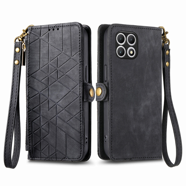 Funda de teléfono T-Mobile T Phone 2 5G cuero con hebilla lateral y billetera con cremallera geométrica (Negro)
