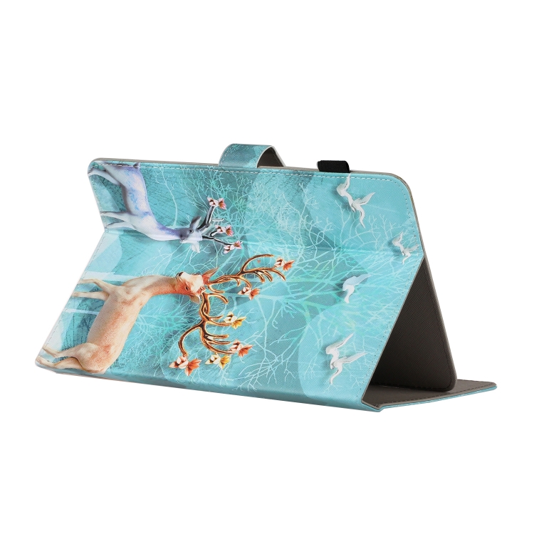 Funda Tablet 8 Pulgadas Universal Cuero PU Patrón Dibujo Colores con Soporte y Ranura (Sika Deer)