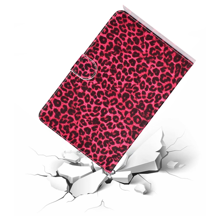 - 1x Funda para Tablet Universal 8 Pulgadas Cuero PU Patrón Dibujo Tapa Horizontal Soporte Ranura Tarjeta (Leopardo Rosa Rojo)