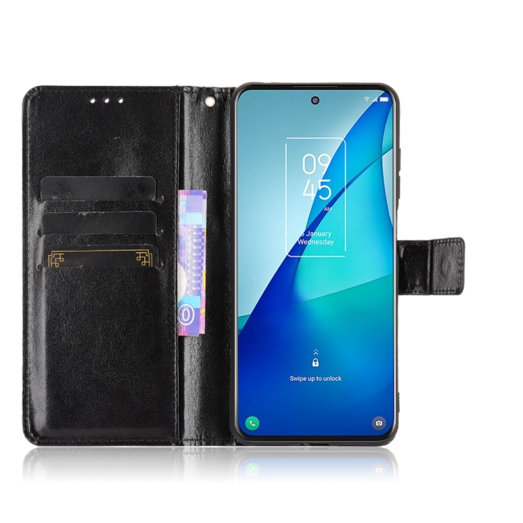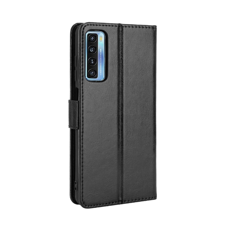 Funda de Cuero Horizontal Flip para TCL 20 5G y TCL 20S Crazy Horse Textura con Soporte, Ranuras y Cordón (Negro)