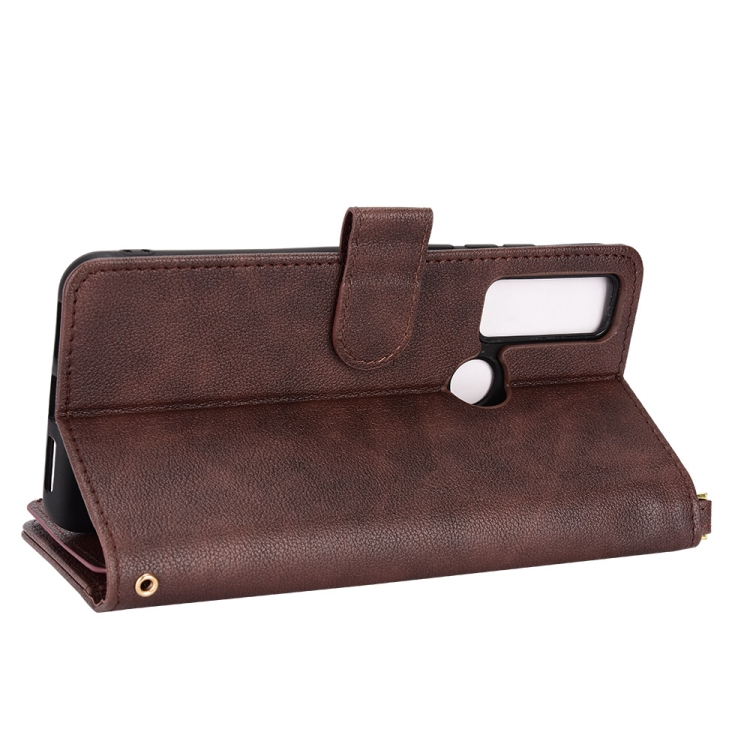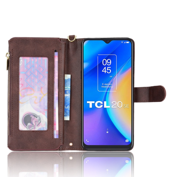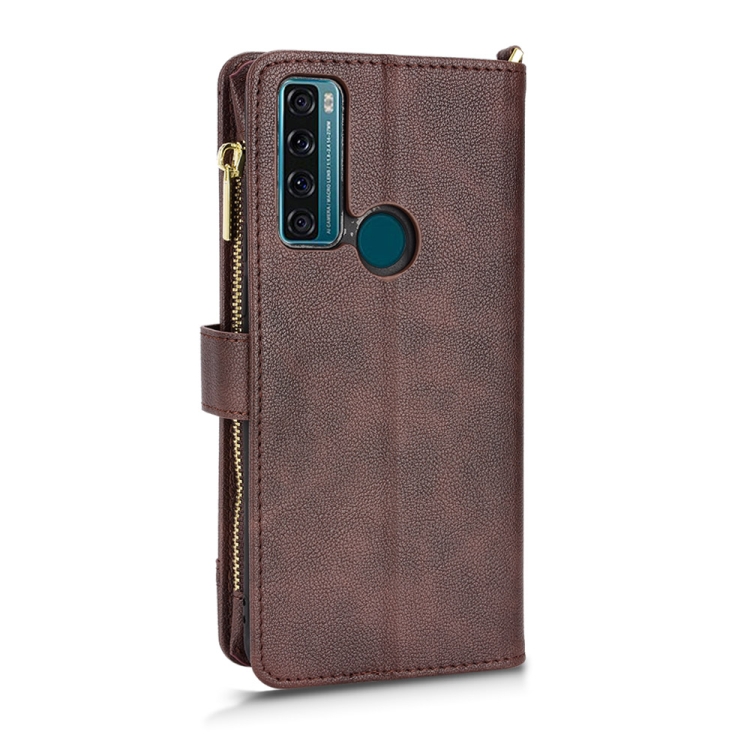 Funda para TCL 20 Se Litchi Texture Cape de Cuero con Cremallera (Marrón)