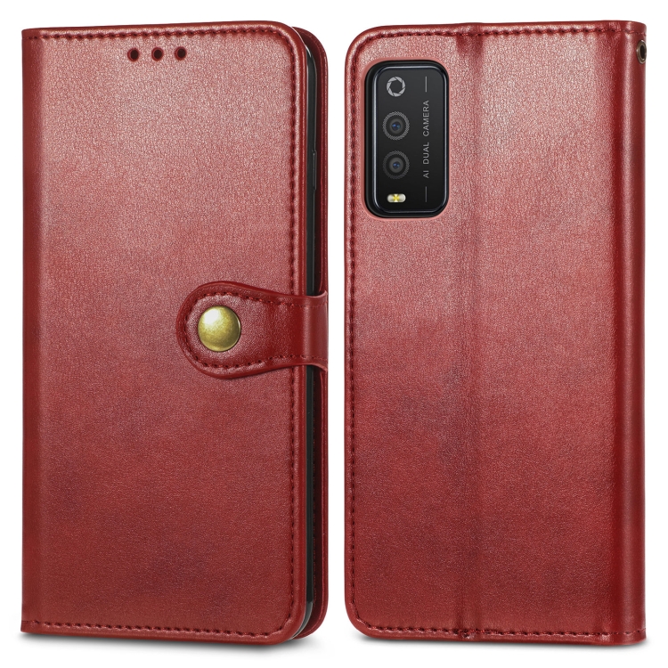 Funda para TCL 205 con Hebilla de Cuero y Color Sólido (Rojo)