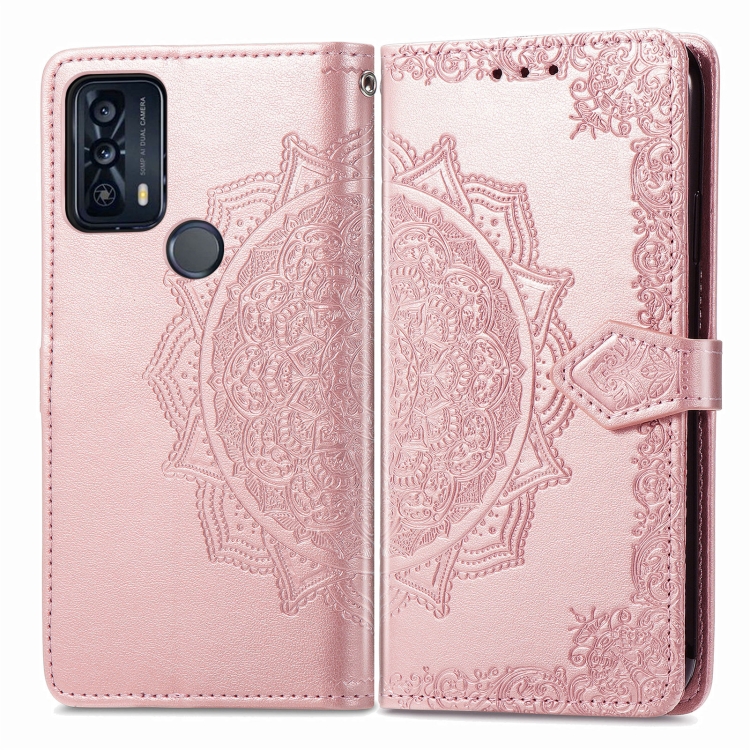 Funda de Cuero para TCL 20B Mandala Flower Horizontal (Oro Rosa)