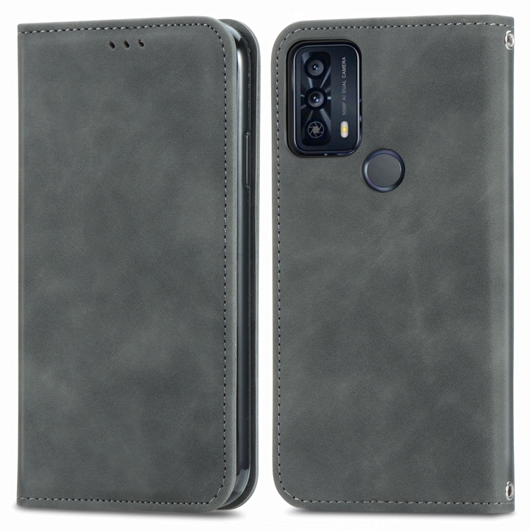 Funda para TCL 20B Retro Piel con Flip Horizontal Magnético (Gris)