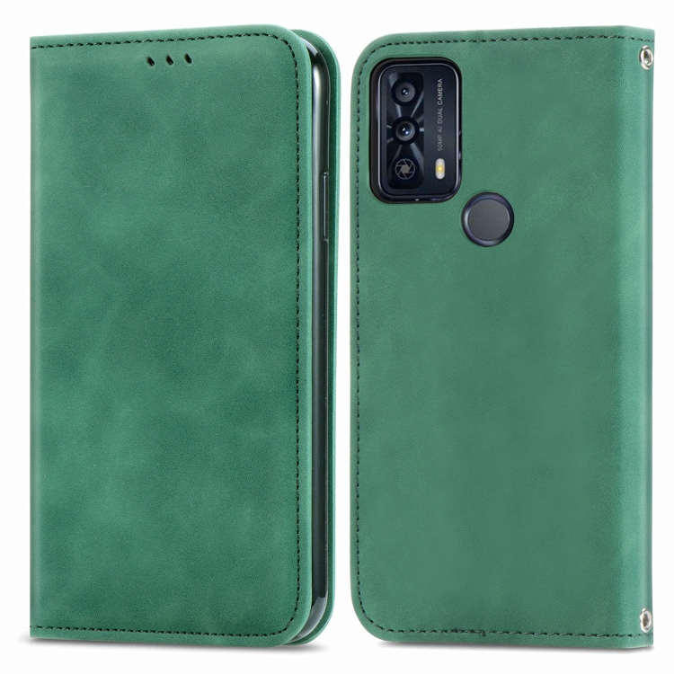 Funda para TCL 20B de Cuero Retro con Flip Horizontal Magnético (Verde)