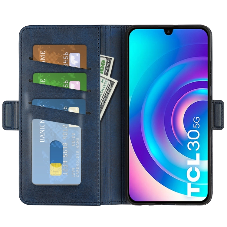Funda de Cuero para TCL 30 5G / 30+ con Hebilla Magnética Doble Lado (Azul Oscuro)