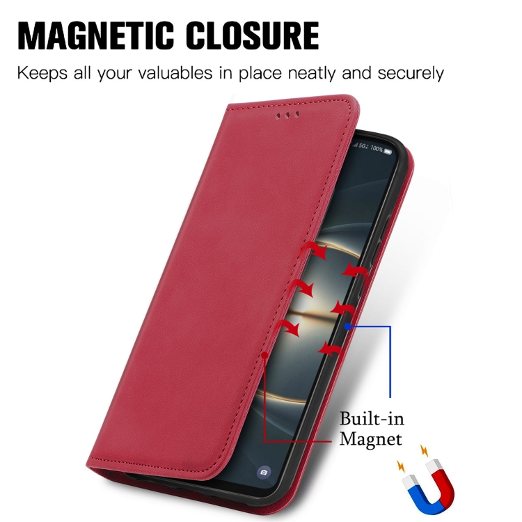 Funda para TCL 30 V 5G de Cuero Retro con Flip Horizontal Magnético (Rojo)