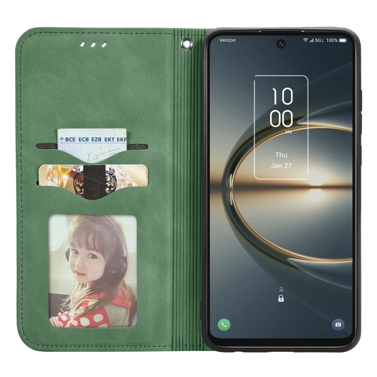 Funda para TCL 30 V 5G Retro Piel con Flip Horizontal Magnético (Verde)