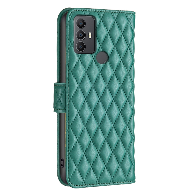 Funda de Cuero con Tapa para TCL 305/306/30 Se Diamond Lattice Wallet (Verde)