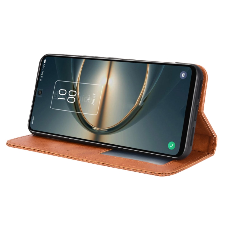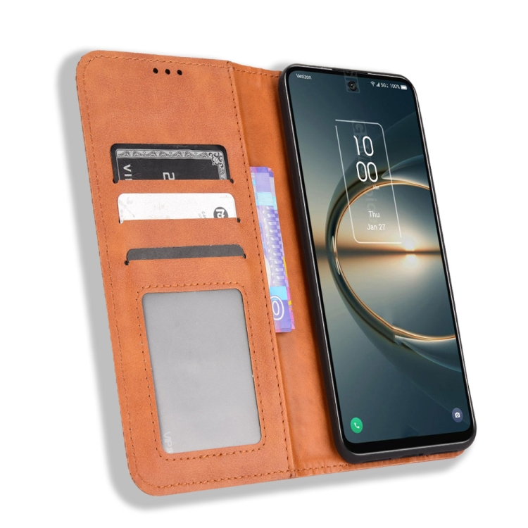Funda para TCL 30V 5G con Hebilla Magnética y Textura Retro de Cuero (Marrón)