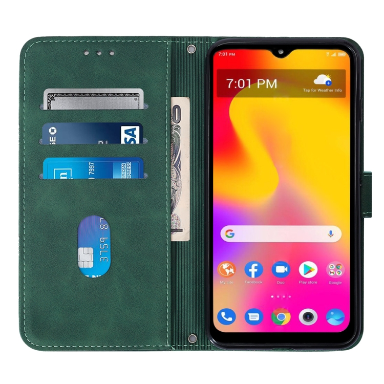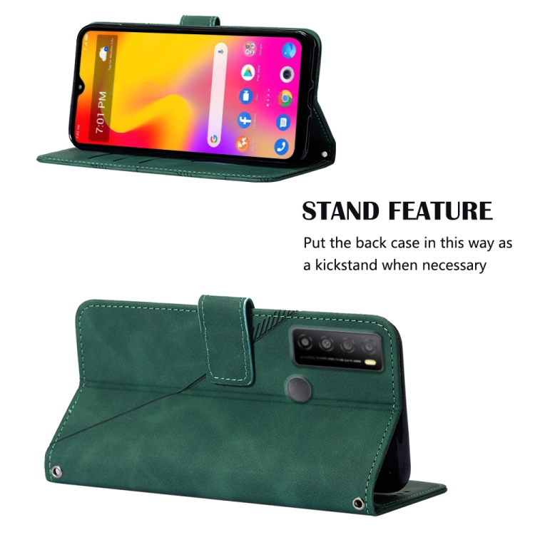 Funda de Cuero Flip para TCL 30Xl T701Dl Crossbody 3D en Relieve (Verde Oscuro)