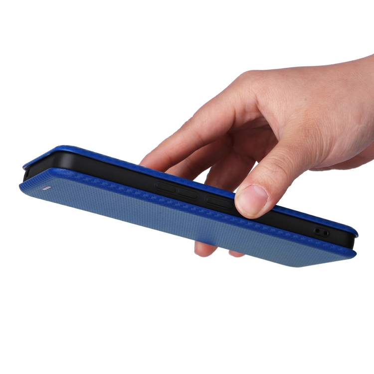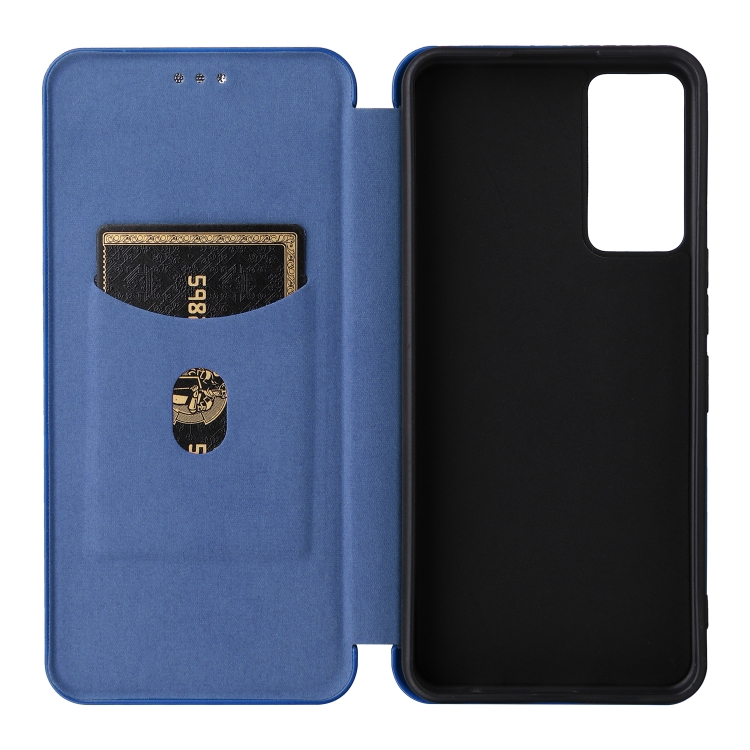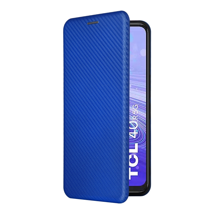 Funda de Cuero para TCL 40 R 5G con Tapa Textura Fibra de Carbono (Azul)