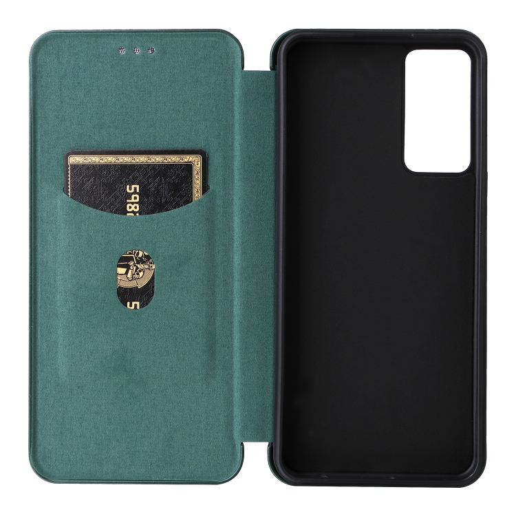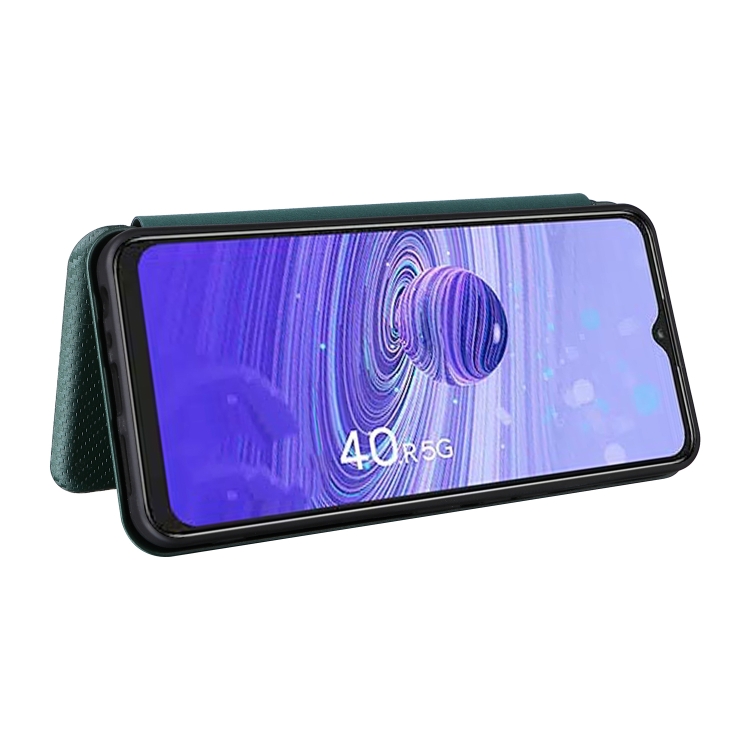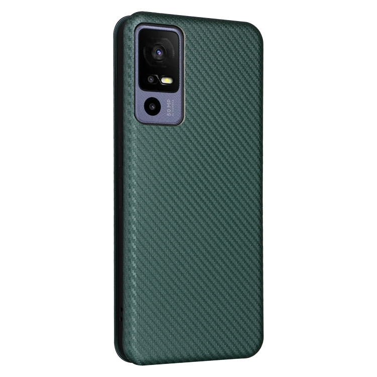 Funda de Cuero para TCL 40 R 5G con Tapa de Fibra de Carbono (Verde)