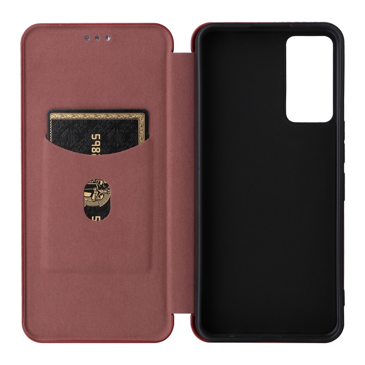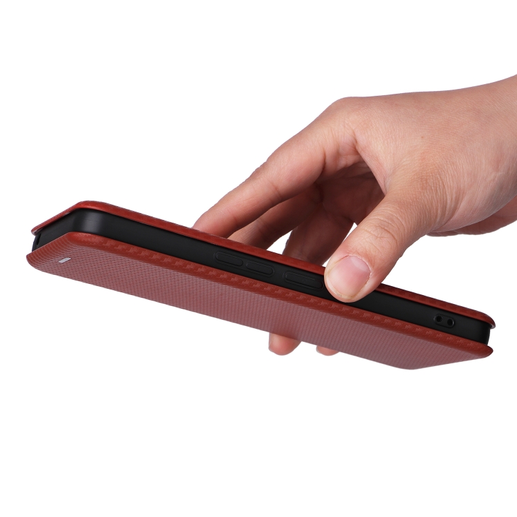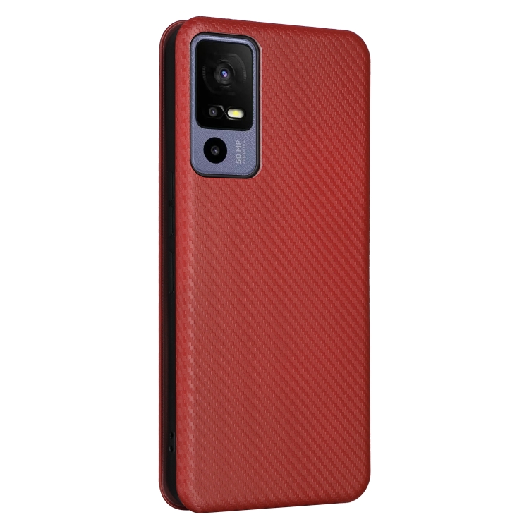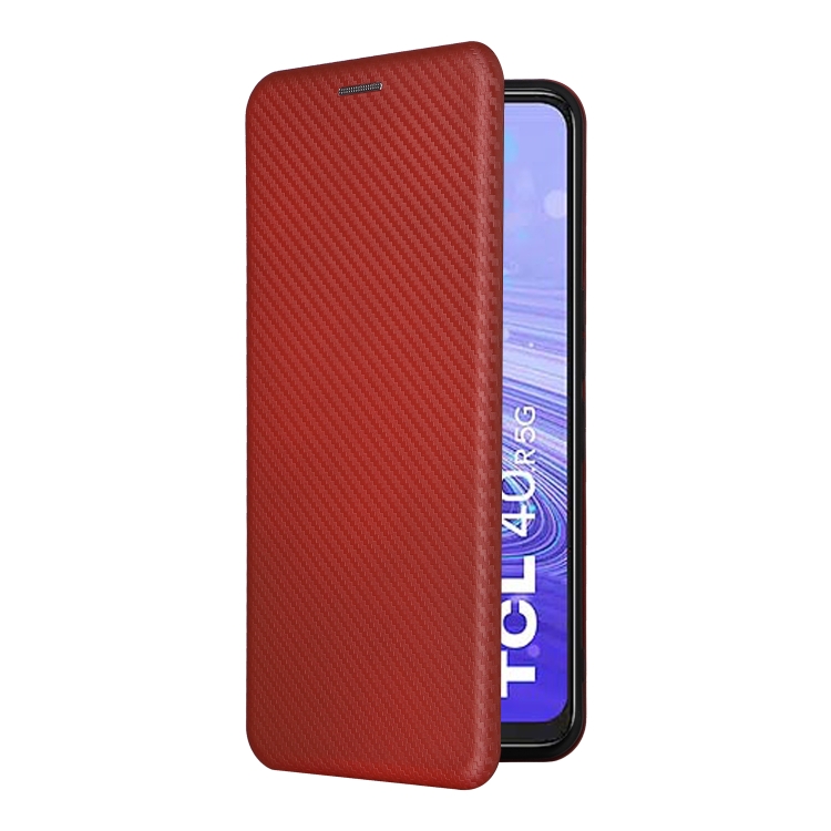 Funda de Teléfono TCL 40 R 5G Cuero Textura Fibra de Carbono (Marrón)