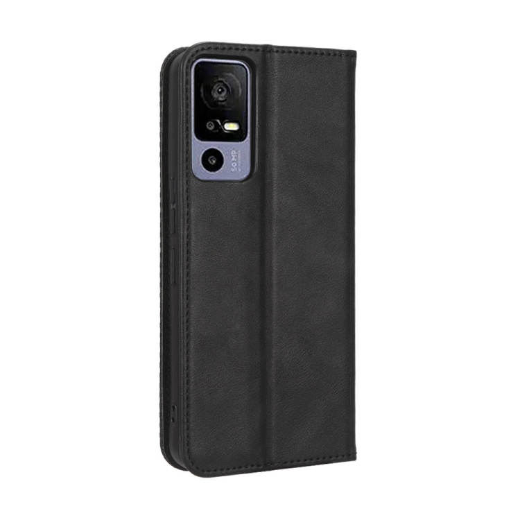 Funda de Cuero para TCL 40 R 5G con Hebilla Magnética y Textura Retro (Negro)
