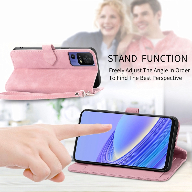 Estuche para TCL 40 SE de Cuero con Cremallera y Flores en Relieve (Rosa)