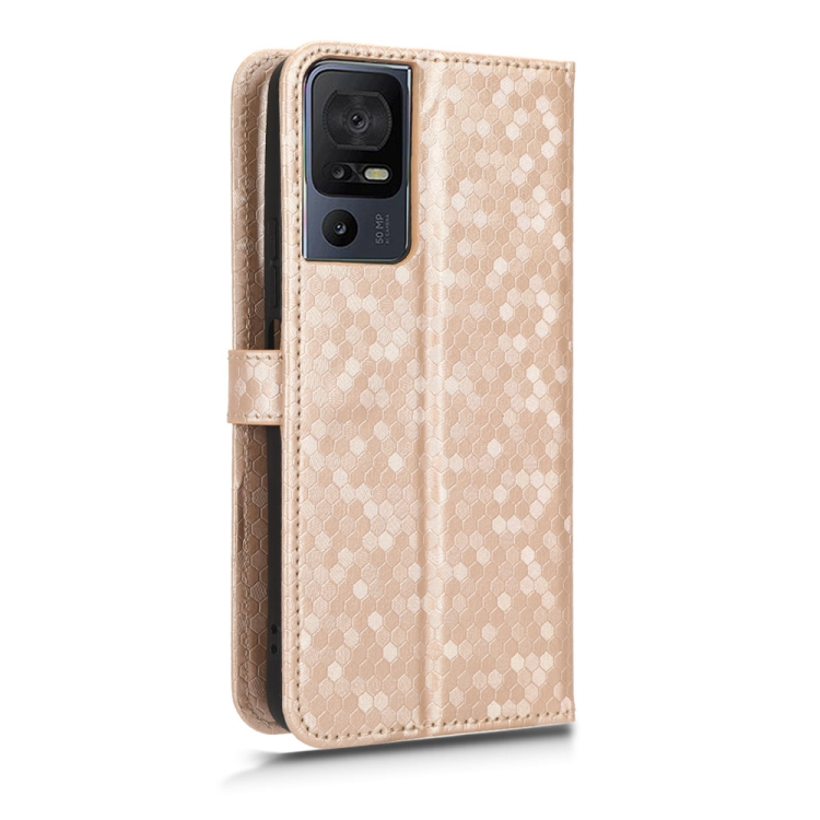 Funda de Cuero para TCL 40 Se con Textura Punto de Panal (Oro)