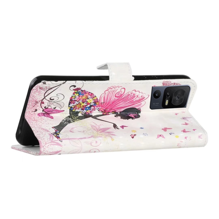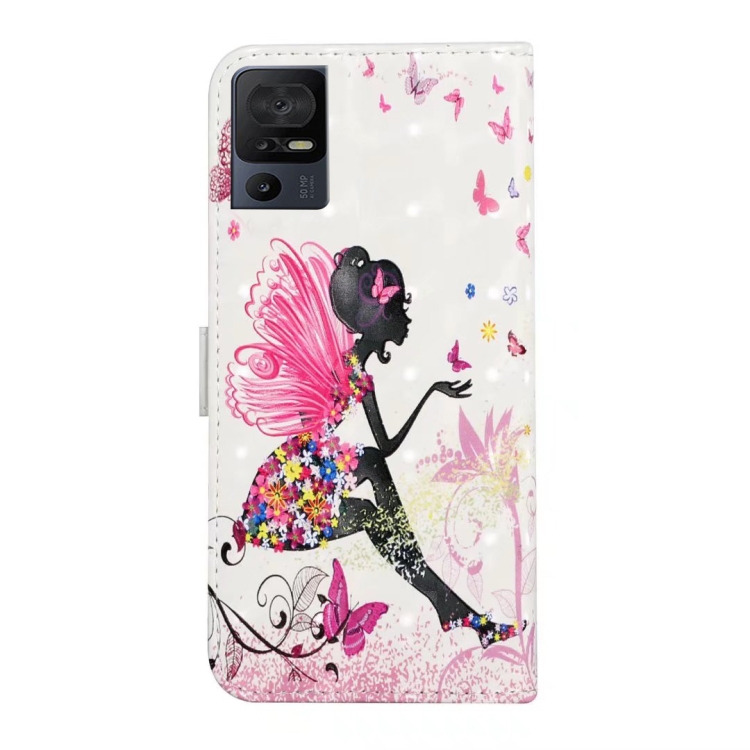 Funda de Cuero para TCL 40 Se con Dibujo 3D en Relieve al Óleo (Hada de Flores)