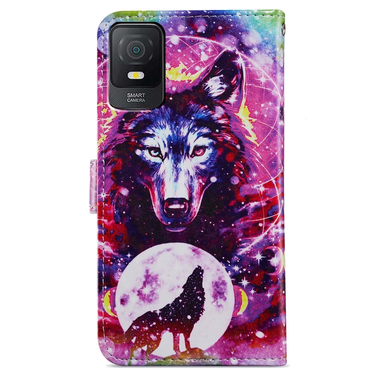 Funda de Cuero para TCL 403 con Tapa Horizontal y Patrón Tótem de Lobo