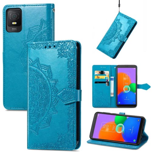 Funda de Cuero para TCL 403 Mandala Flower en Relieve (Azul)