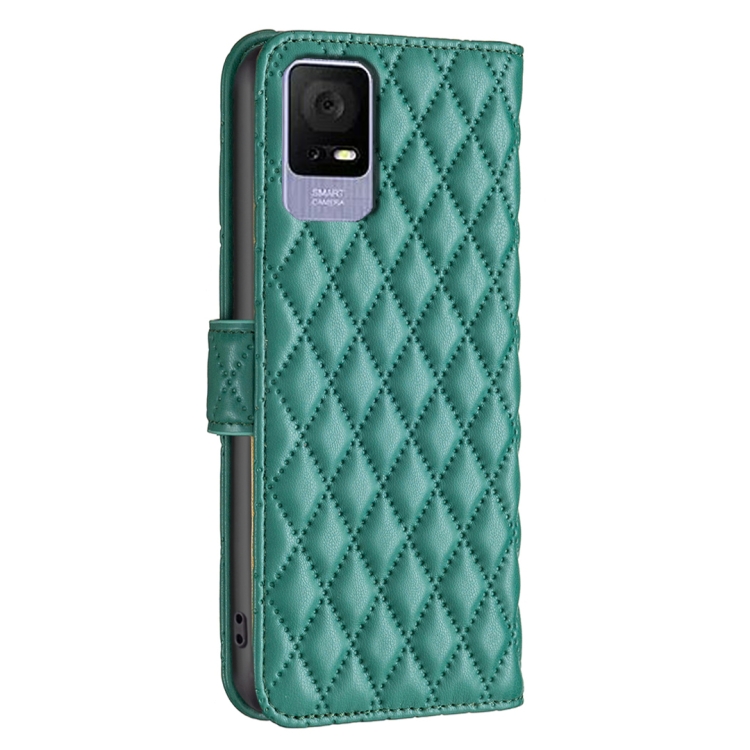 Funda de Cuero con Tapa para Teléfono TCL 405 Diamond Lattice (Verde)