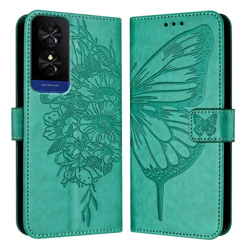 Funda de Cuero para TCL 50 5G con Mariposa en Relieve (Verde)