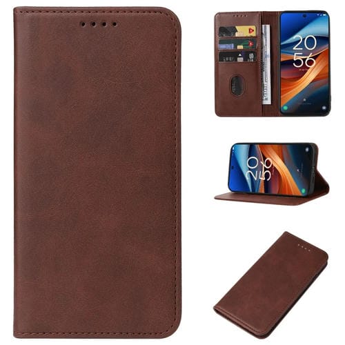 Funda de Cuero para TCL 50 SE con Cierre Magnético (Marrón)