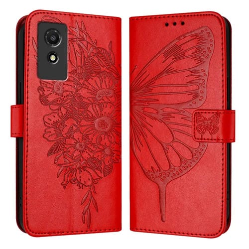 Funda de Cuero para TCL 501 con Mariposa en Relieve (Rojo)