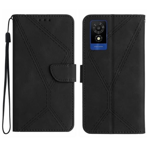Funda de Cuero para TCL 502 con Costuras en Relieve (Negro)