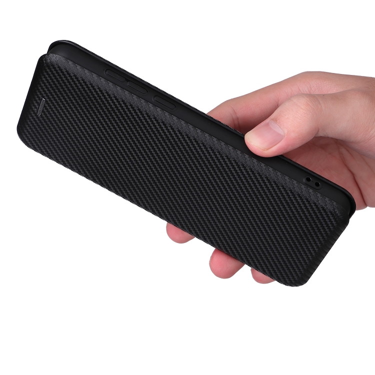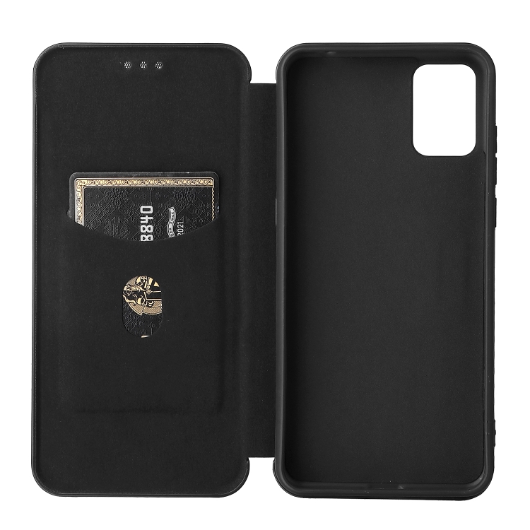 Funda para TCL A3X Fibra de Carbono Textura Magnético Horizontal Flip con Ranura para Tarjeta (Negro)