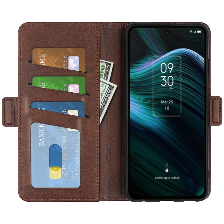 Funda para TCL Stylus 5G Cuero con Hebilla Magnética Doble Lado Horizontal Flip (Marrón)