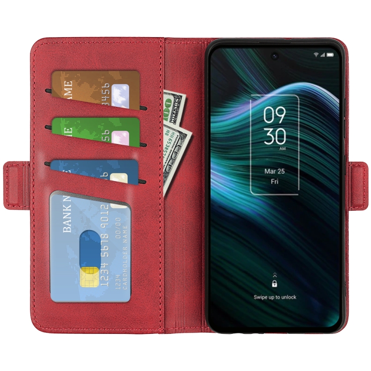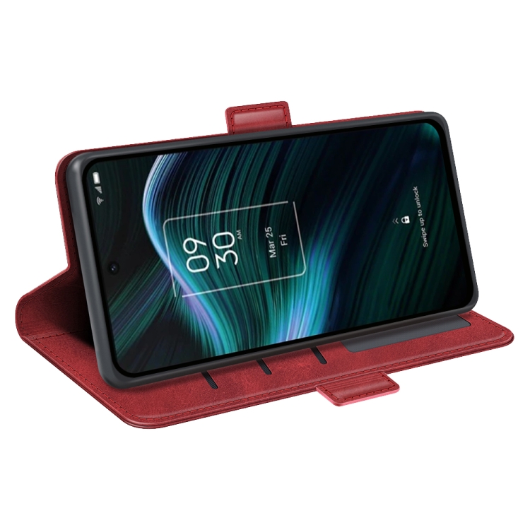 Funda para TCL Stylus 5G Doble Lado con Hebilla Magnética Horizontal Flip Cuero (Rojo)