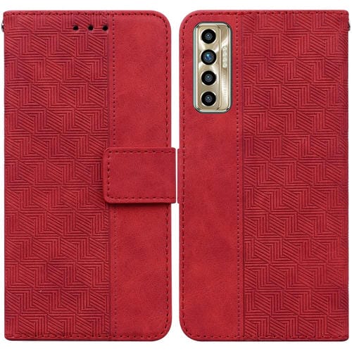 Caja de Cuero para Tecno Camon 17P con Relieve Geométrico (Rojo)