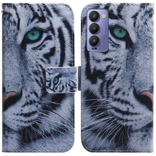 Funda de Cuero para Tecno Camon 18 / 18P con Dibujo de Tigre (Color)