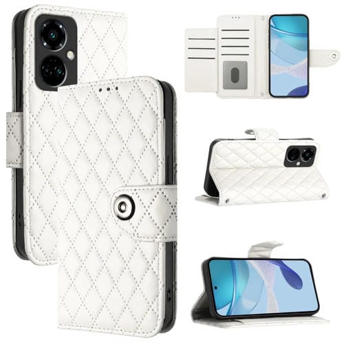 Funda de Cuero para Tecno Camon 19 Pro 5G con Tapa y Textura Romboidal con Cordón (Blanco)
