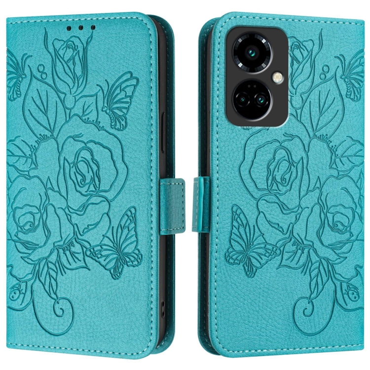 Funda de Cuero Antirrobo RFID para Tecno Camon 19 Pro 5G con Relieve (Azul Claro)