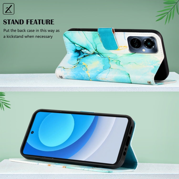 Funda de Cuero con Tapa para Tecno Camon 19 Pro 5G Pt003 Patrón Mármol (Verde)