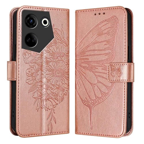 Funda de Cuero Tecno Camon 20/20 Pro 4G con Mariposa en Relieve (Oro Rosa)