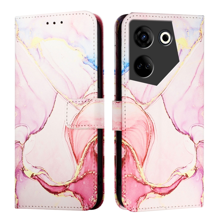 Funda de Cuero para Tecno Camon 20/20 Pro 4G Pt003 con Tapa y Patrón de Mármol (Oro Rosa)