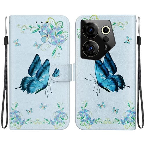 Funda de Cuero para Tecno Camon 20 Premier 5G con Dibujo Coloreado y Textura de Cristal (Azul)