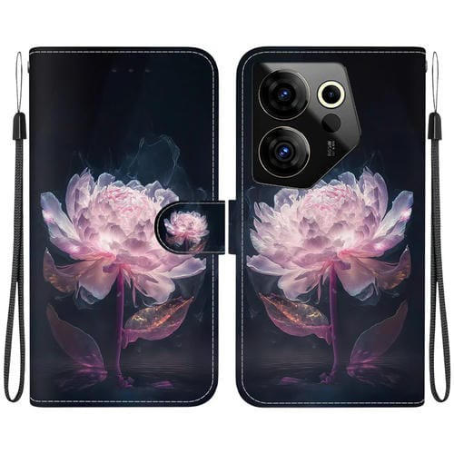 Funda de Cuero para Tecno Camon 20 Premier 5G con Dibujo Coloreado y Textura de Cristal (Peonía Púrpura)