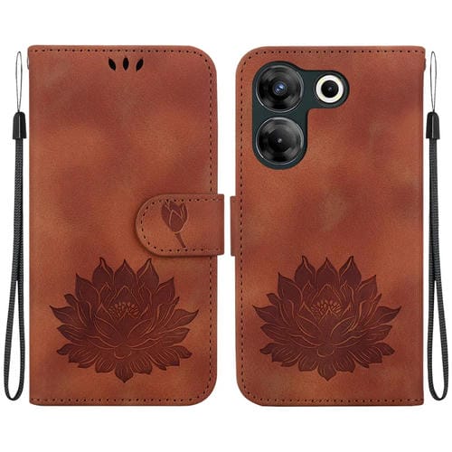 Funda de Cuero para Tecno Camon 20 Pro 5G Lotus en Relieve (Marrón)