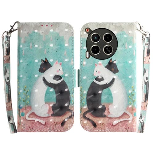 Funda para Tecno Camon 30 5G / 30 4G Cl6 Cl7 de Cuero con Tapa Horizontal 3D (Gato Blanco Negro)