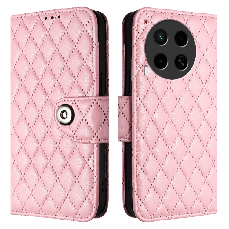 Funda para Tecno Camon 30 5G / 4G con Tapa de Cuero Textura Rómbica y Cordón (Rosa)