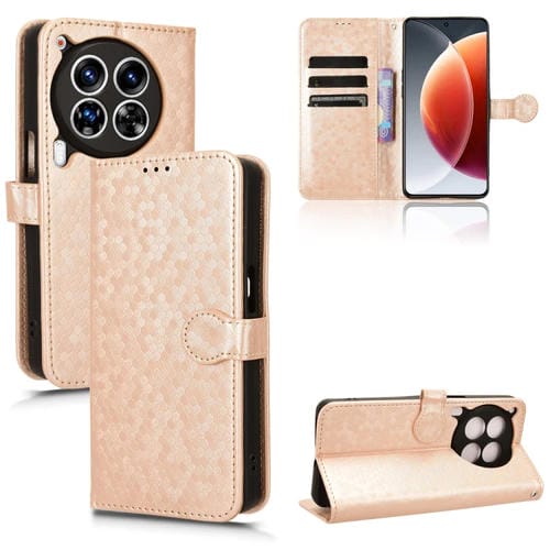 Funda de Cuero para Tecno Camon 30 Premier 5G con Textura de Punto de Panal (Dorado)